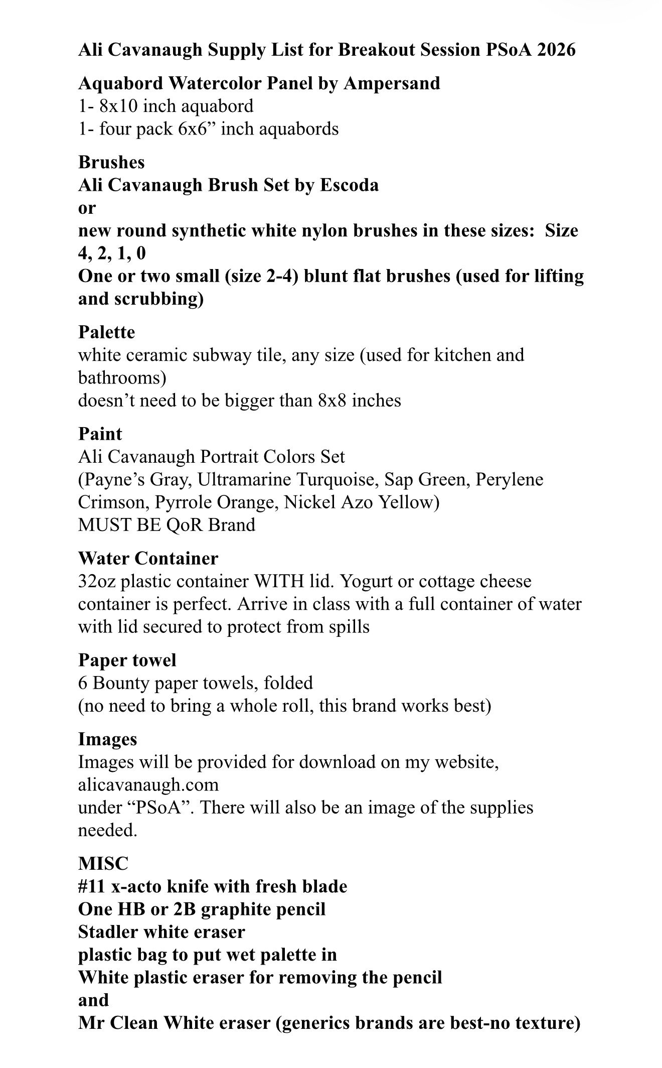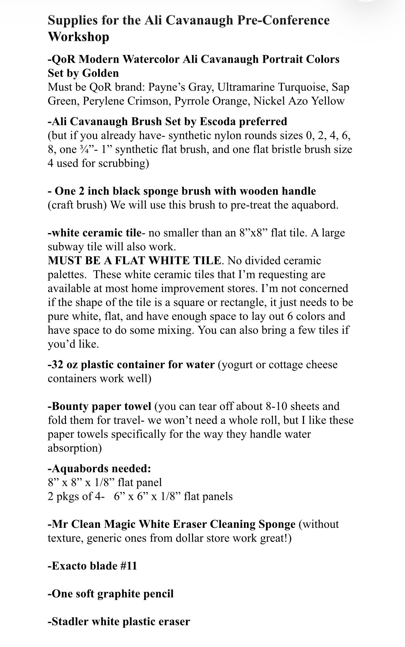 We will be focusing on technique and the class sizes will be large… so it will be easiest to work from photo reference during our time together. We will not be painting on paper, only on Aquabord.