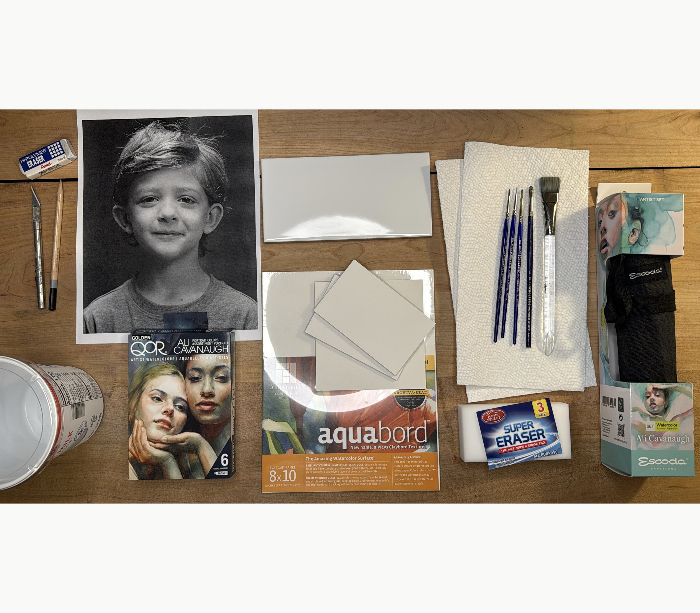 Misc supplies: 6 quality paper towels, HB or 2B Pencil, X-ACTO blade, white eraser